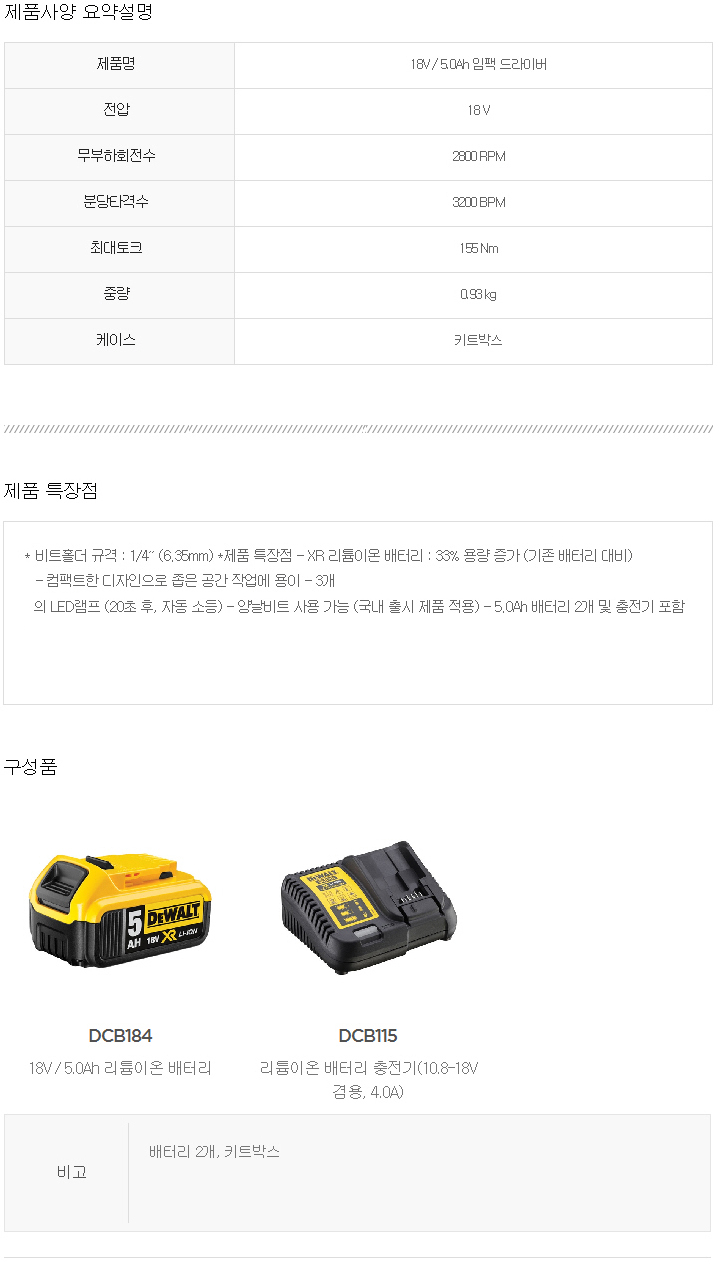 비트홀더:1/4´´(6.35mm) 배터리 : 33% 용량 증가 양날비트 사용 가능제품