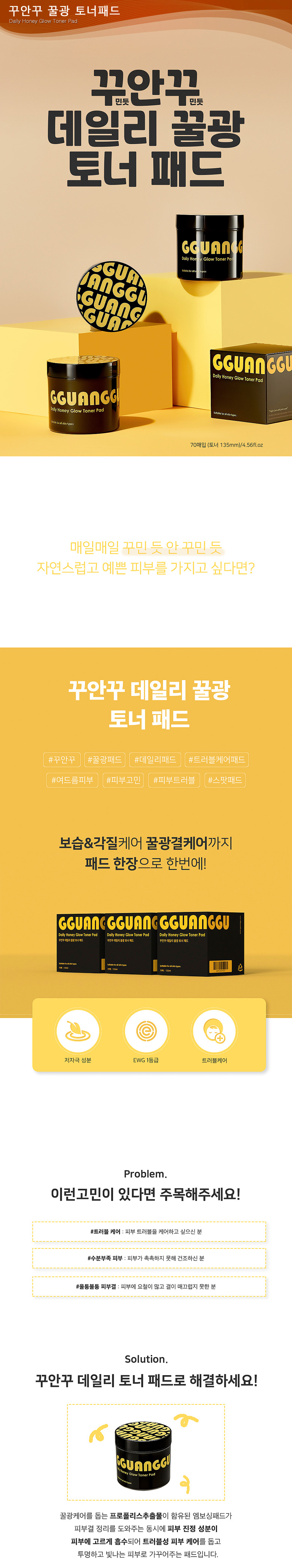 건조한피부, 트러블케어 EWG 1등급, 저자극성분 엠보싱패드(70매/135ml)